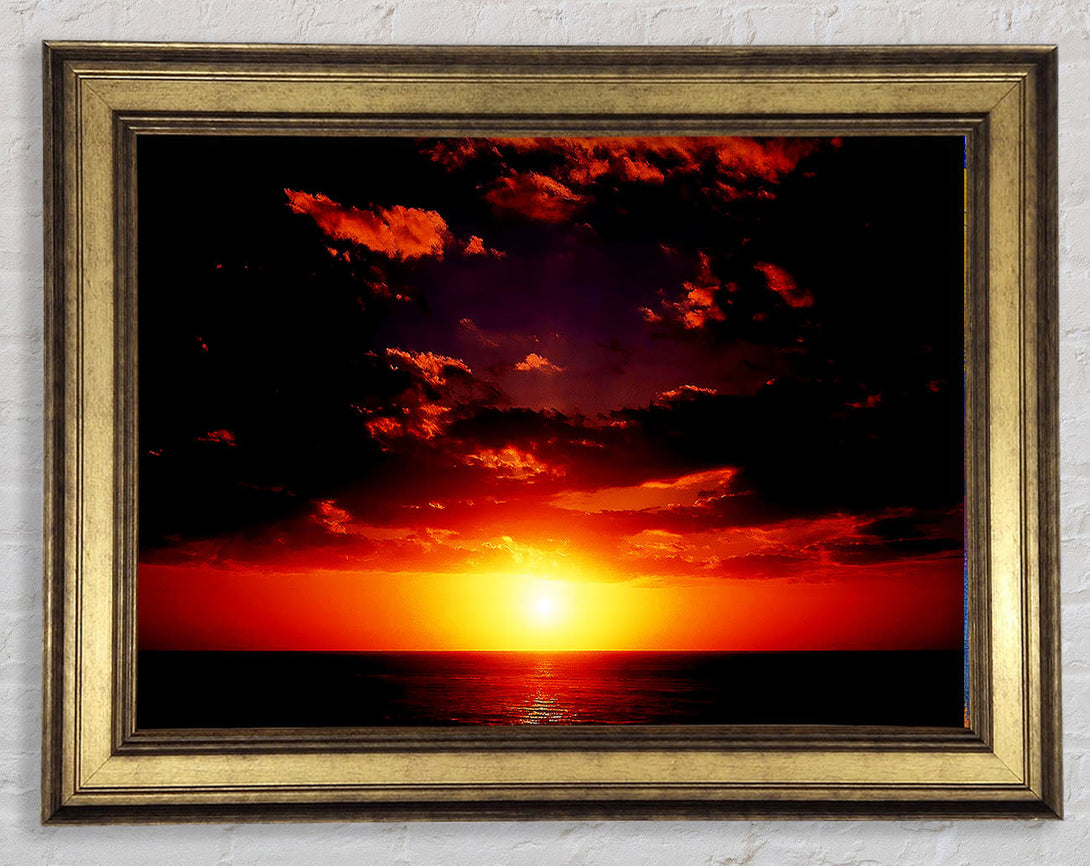 Sunset Through The Black Ocean Clouds Framed Print