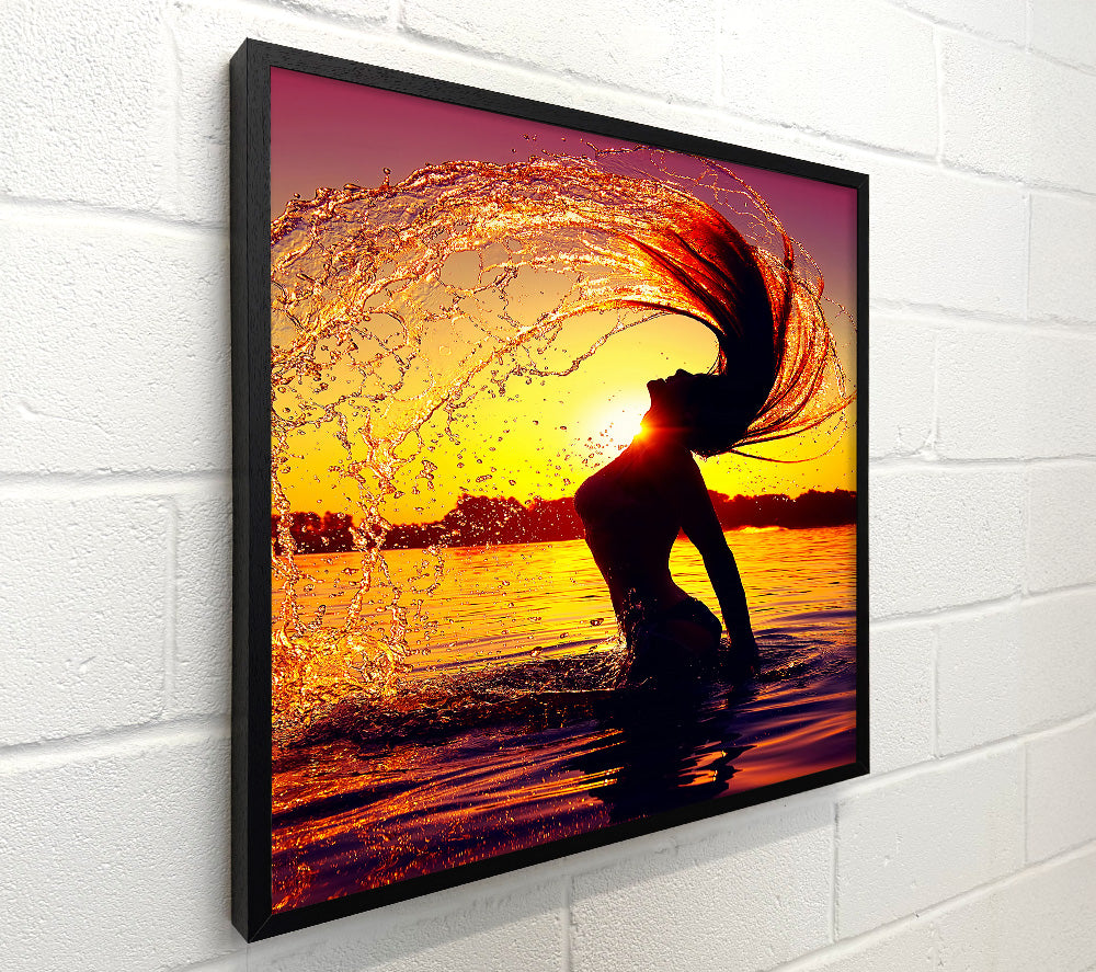 Sunset woman Ocean Splash