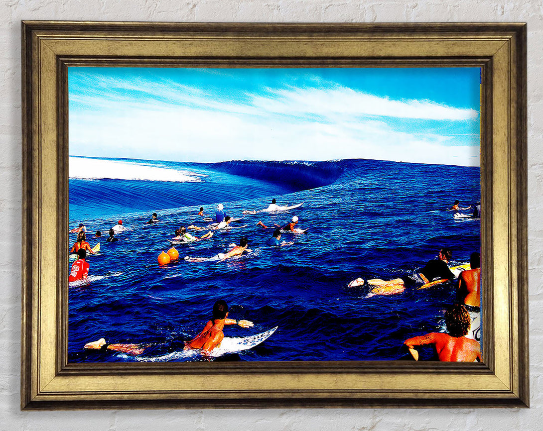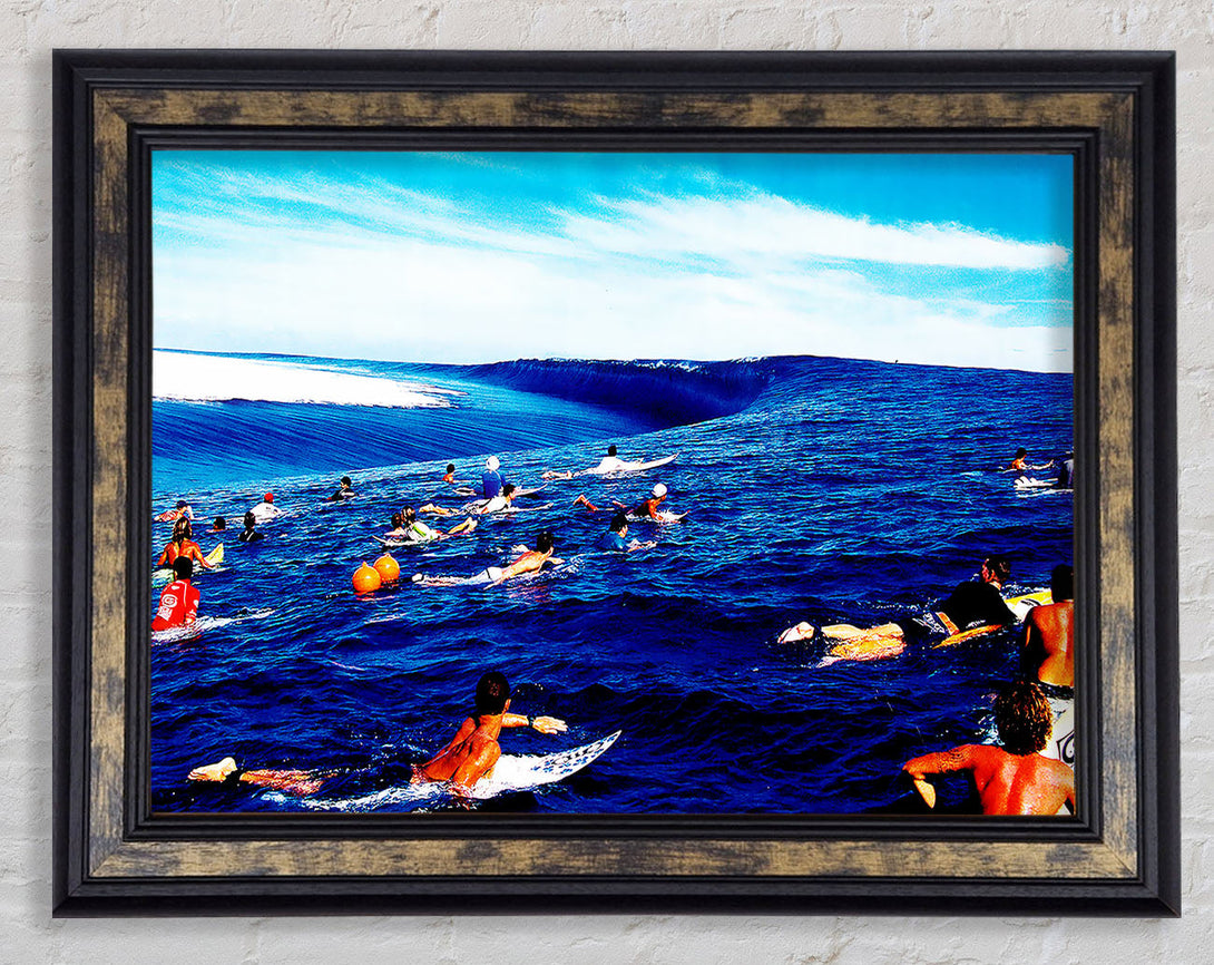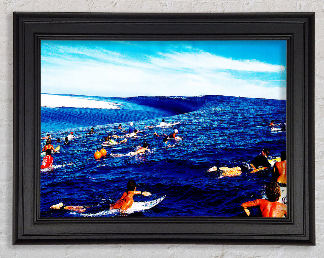 Surfers Hunt For The Ultimate Wave Framed Print