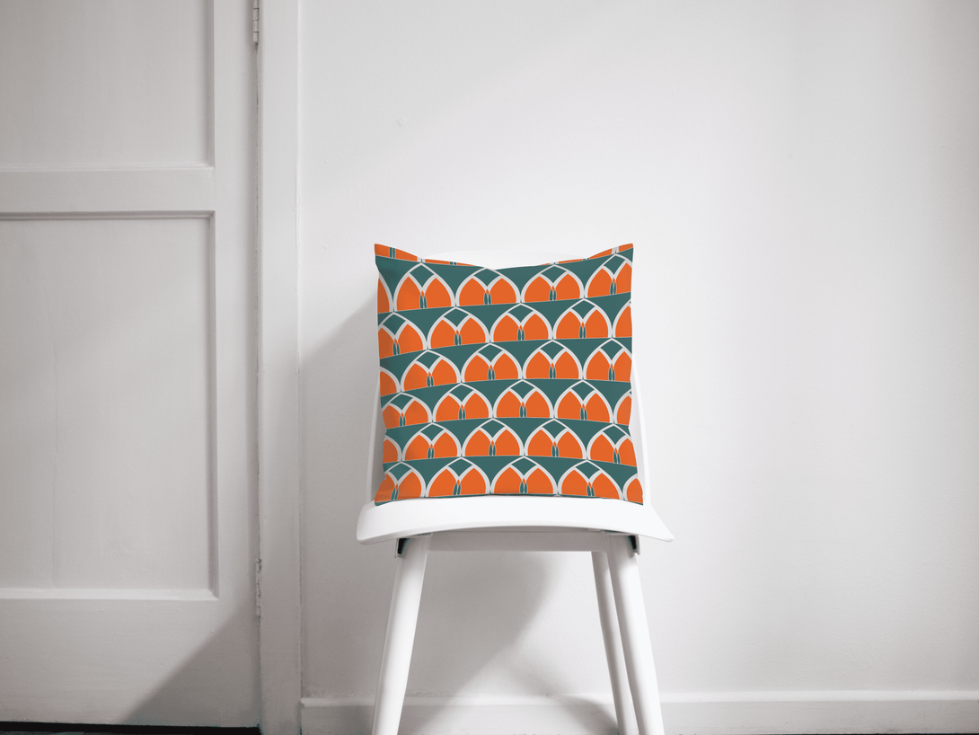 Teal and Orange Geometric Arches Design Cushion, Throw Pillow