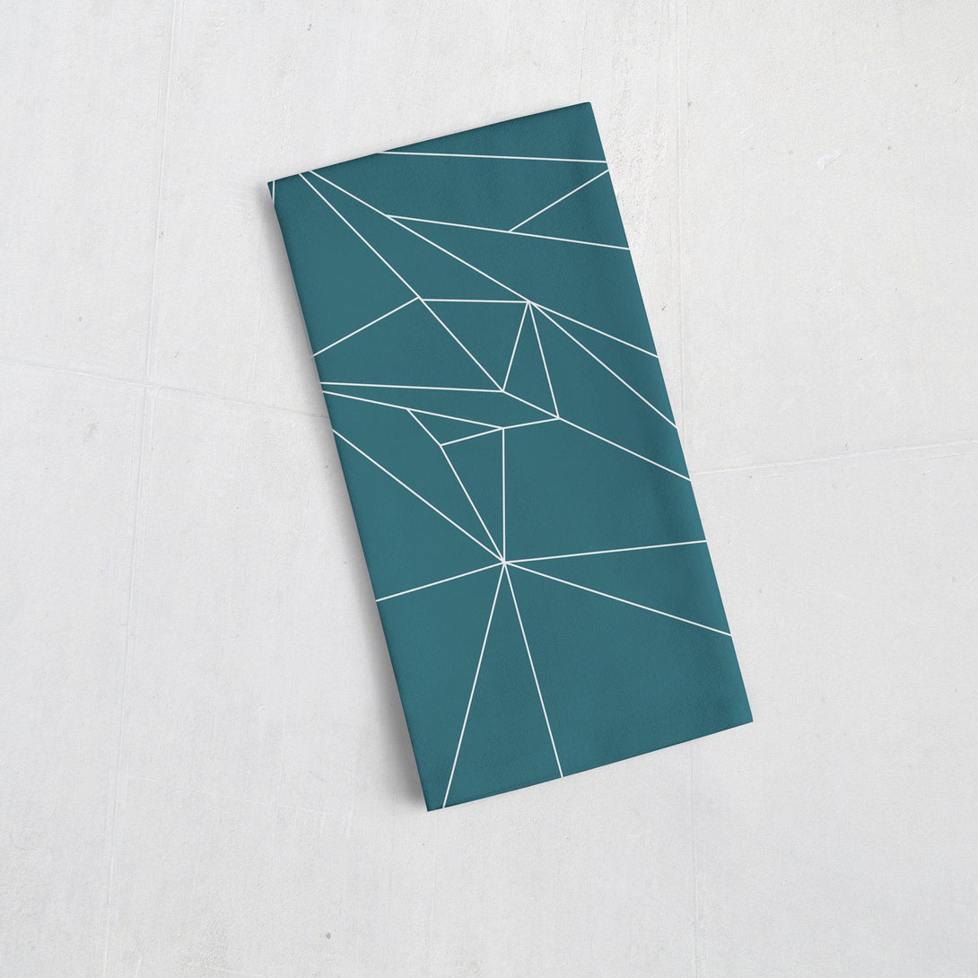 Teal Tea Towel with a White Line Geometric Design, Dish Towel, Kitchen Towel