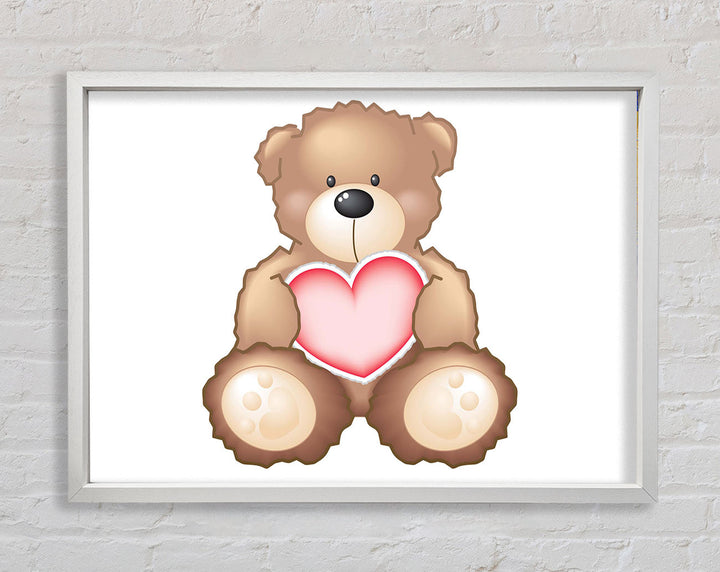 Add a touch of charm to your home with the Teddy Bear Love Heart White Framed Print. This delightful piece of framed art is available in six sizes, ranging from small to oversized, ensuring a perfect fit for any space. Each print showcases a cute teddy bear holding a love heart, making it an ideal gift for loved ones or a sweet addition to your decor.