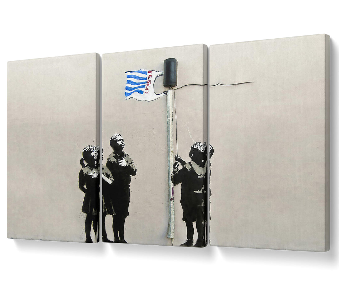 Tesco Generation canvas, printed on coated polyester canvas. Mounted on to a 44mm box frame, ready to hang.
