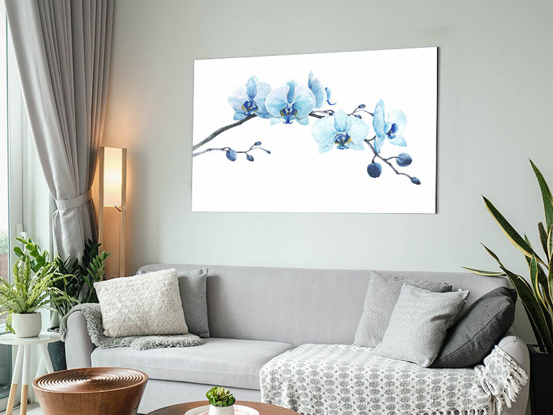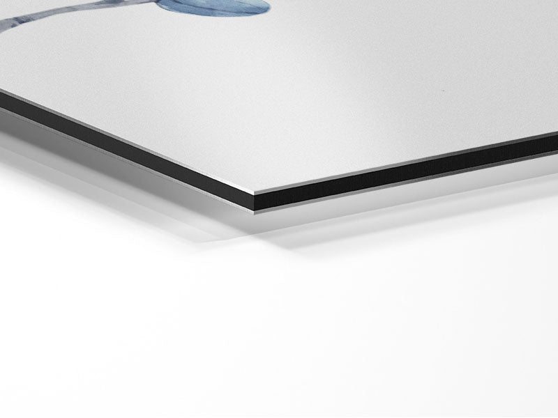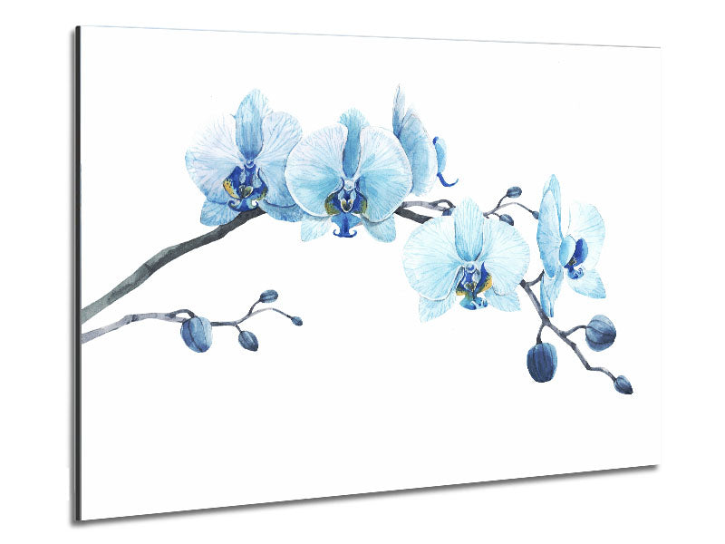 The Blue Orchid Curve Printed on brushed aluminium dibond. A modern way to display art and easy to maintain.