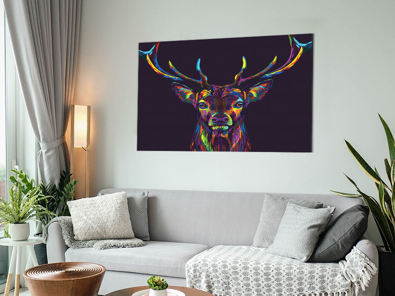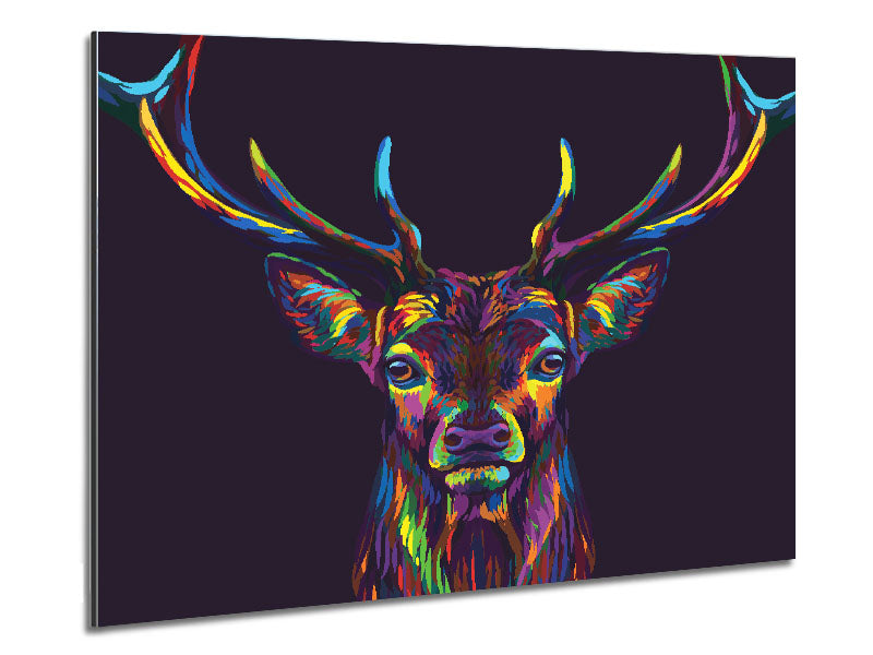 The Colourful Stag Printed on brushed aluminium dibond. A modern way to display art and easy to maintain.