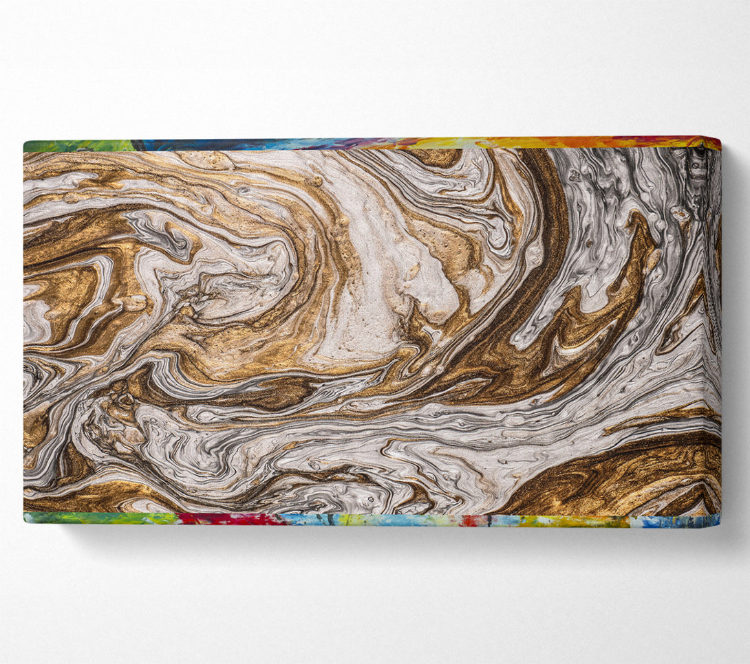 The Flow Of Gold wide canvas, printed on coated polyester canvas. Mounted on to a 44mm box frame, ready to hang.
