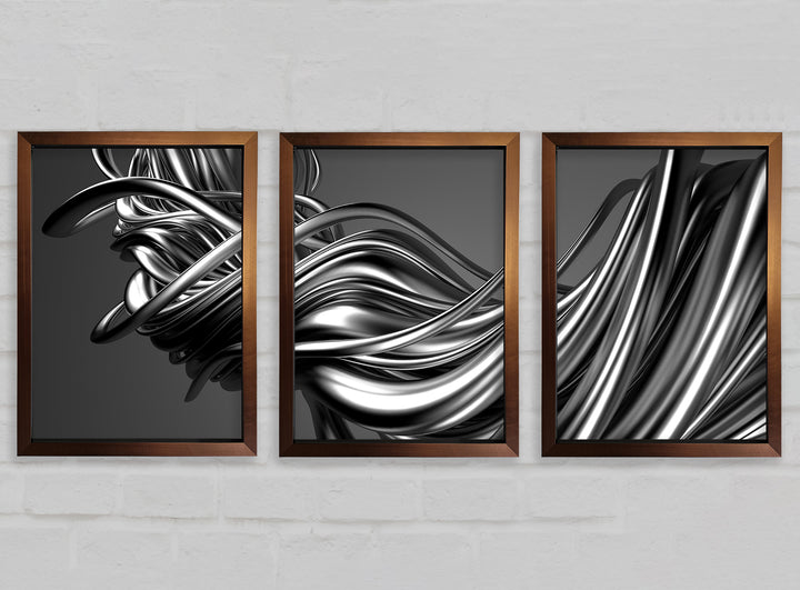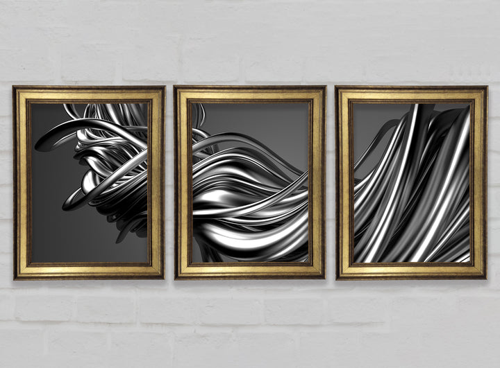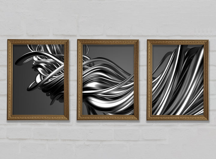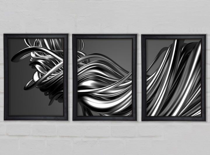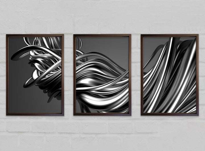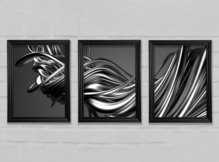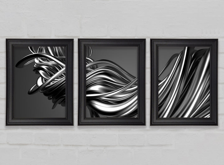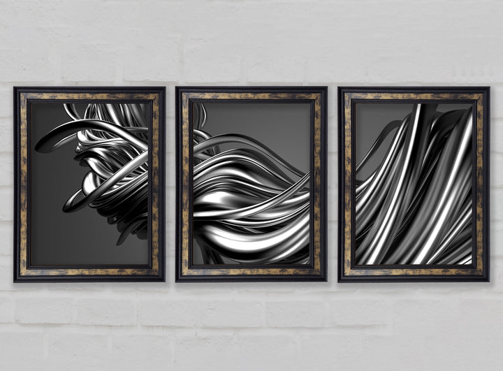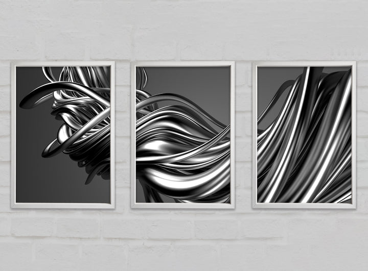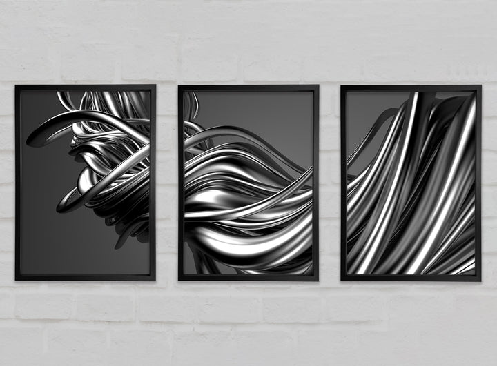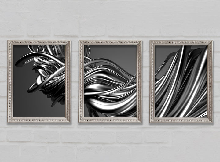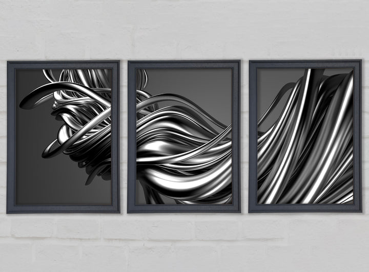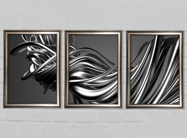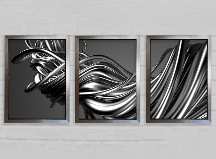 The Flow Of Silver Lines set of 3 framed print wall art, available in mutiple frame colours. Ready to hang from the box and handmade in the United Kingdom.