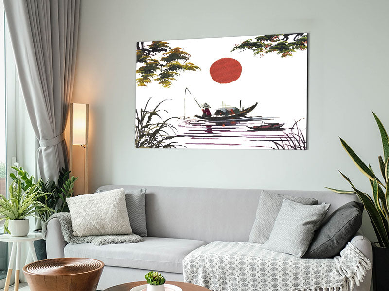 The Japanese Sun Fisherman Printed on brushed aluminium dibond. A modern way to display art and easy to maintain.