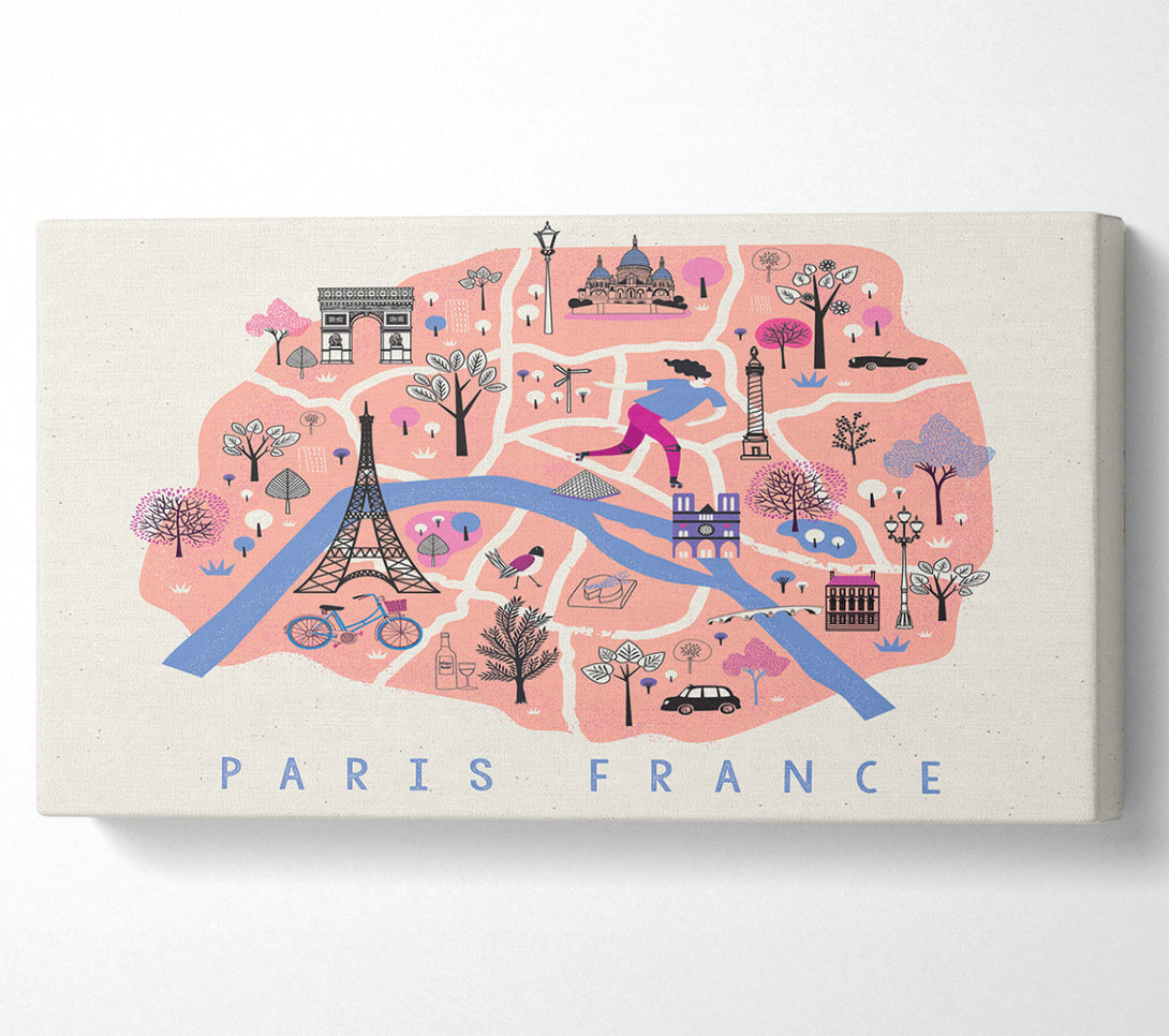 The Little Map Of France wide canvas, printed on coated polyester canvas. Mounted on to a 44mm box frame, ready to hang.