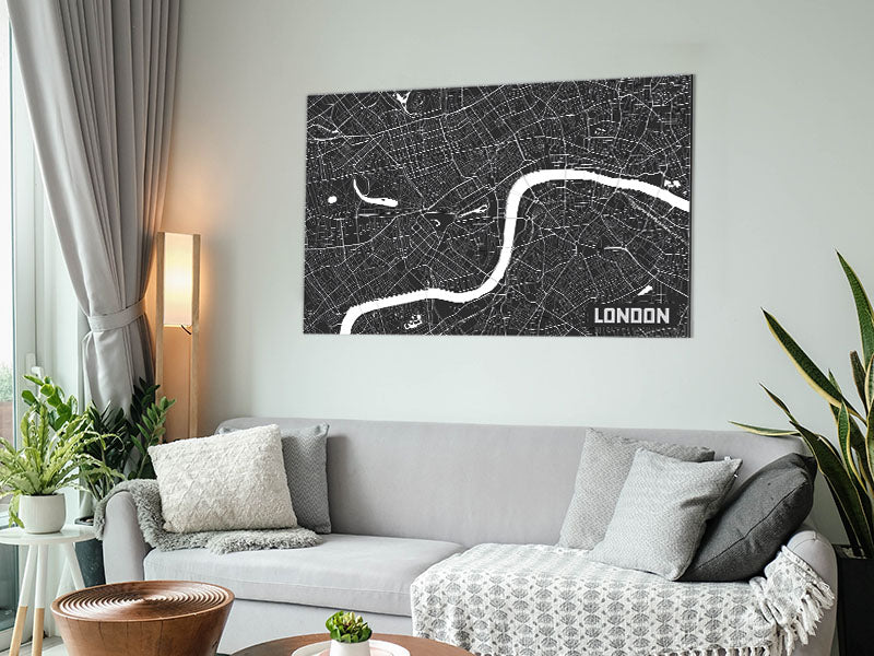 The Map Of London Thames 3 Printed on brushed aluminium dibond. A modern way to display art and easy to maintain.