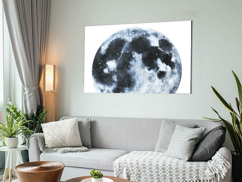 The Moon Peering Printed on brushed aluminium dibond. A modern way to display art and easy to maintain.
