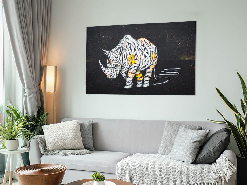 The Mummy Rhino Printed on brushed aluminium dibond. A modern way to display art and easy to maintain.