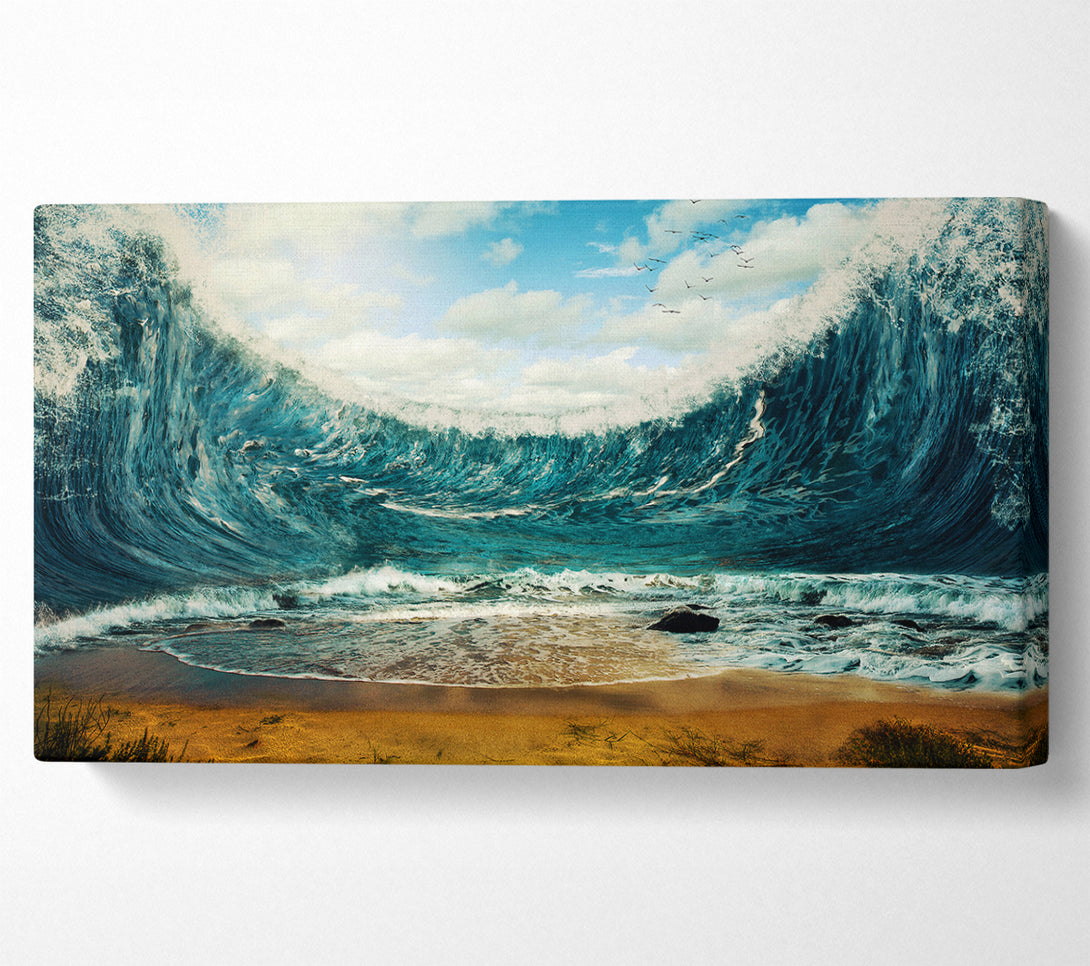 The Ocean Parts wide canvas, printed on coated polyester canvas. Mounted on to a 44mm box frame, ready to hang.