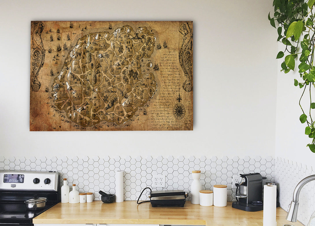 The Old Sepia Map acrylic print, UV printed onto 5mm thick acrylic glass. Comes with everything you need to hang on your wall.