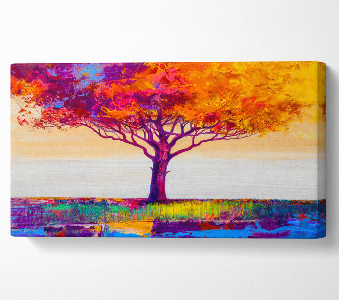 The Orange Tree Paradise wide canvas, printed on coated polyester canvas. Mounted on to a 44mm box frame, ready to hang.