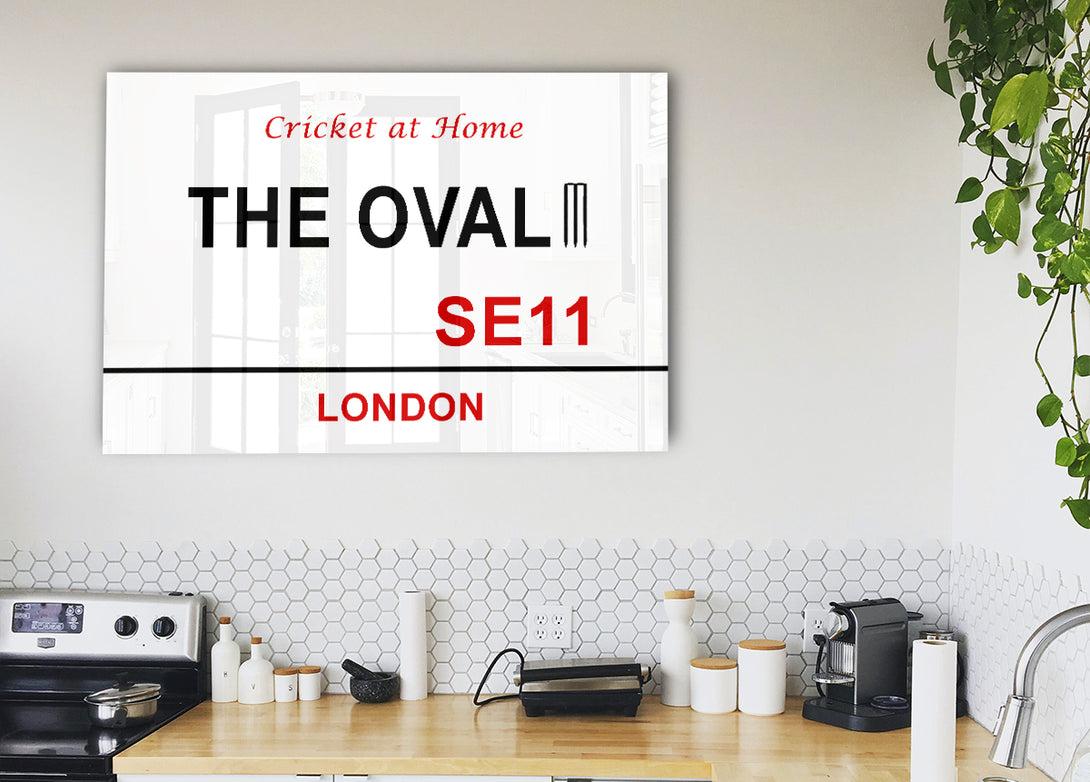 The Oval Signs acrylic print, UV printed onto 5mm thick acrylic glass. Comes with everything you need to hang on your wall.