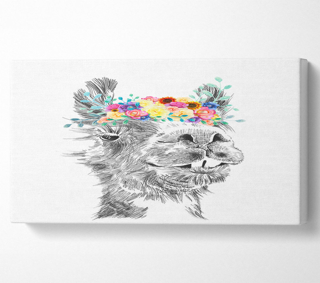 The Pretty Camel wide canvas, printed on coated polyester canvas. Mounted on to a 44mm box frame, ready to hang.