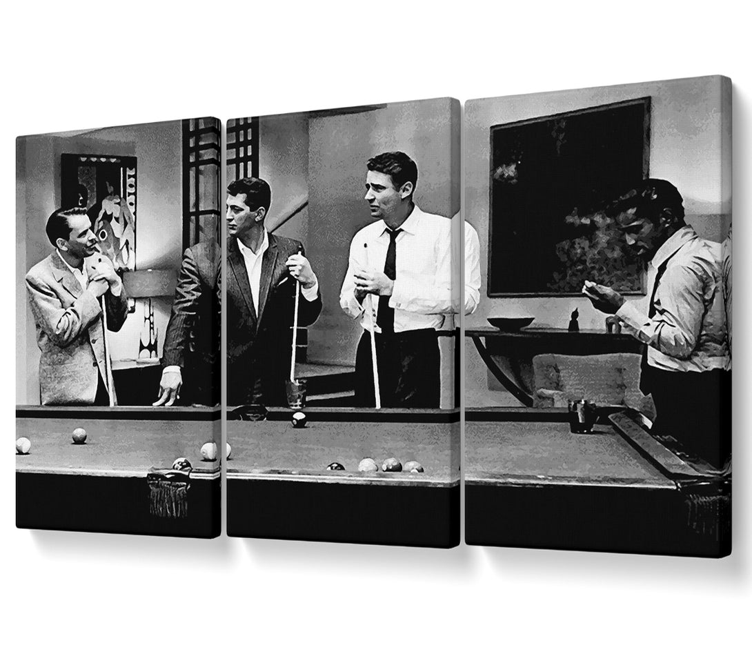 The Rat Pack 4 Playing Pool canvas, printed on coated polyester canvas. Mounted on to a 44mm box frame, ready to hang.