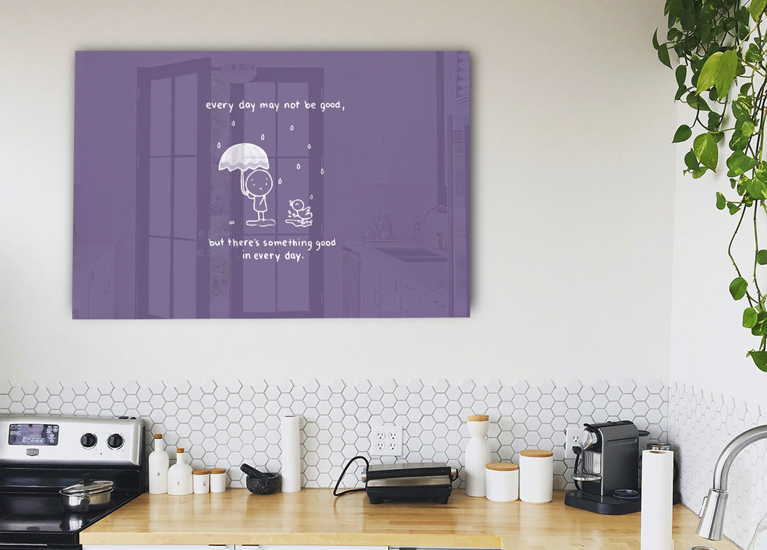 There'S Something Good In Every Day Lilac acrylic print, UV printed onto 5mm thick acrylic glass. Comes with everything you need to hang on your wall.