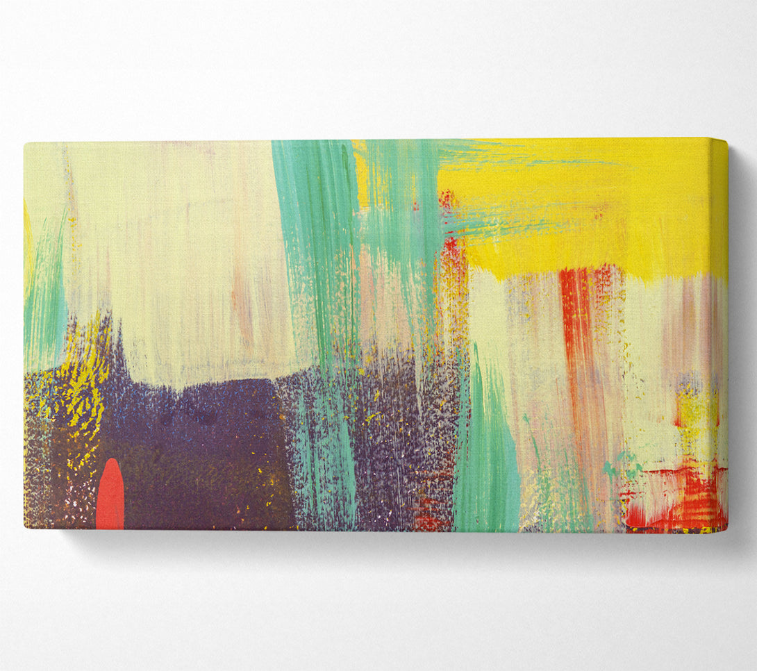 Thick coloured brush strokes wide canvas, printed on coated polyester canvas. Mounted on to a 44mm box frame, ready to hang.