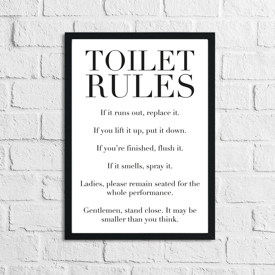 Toilet Rules Funny Humorous Bathroom Wall Decor Print