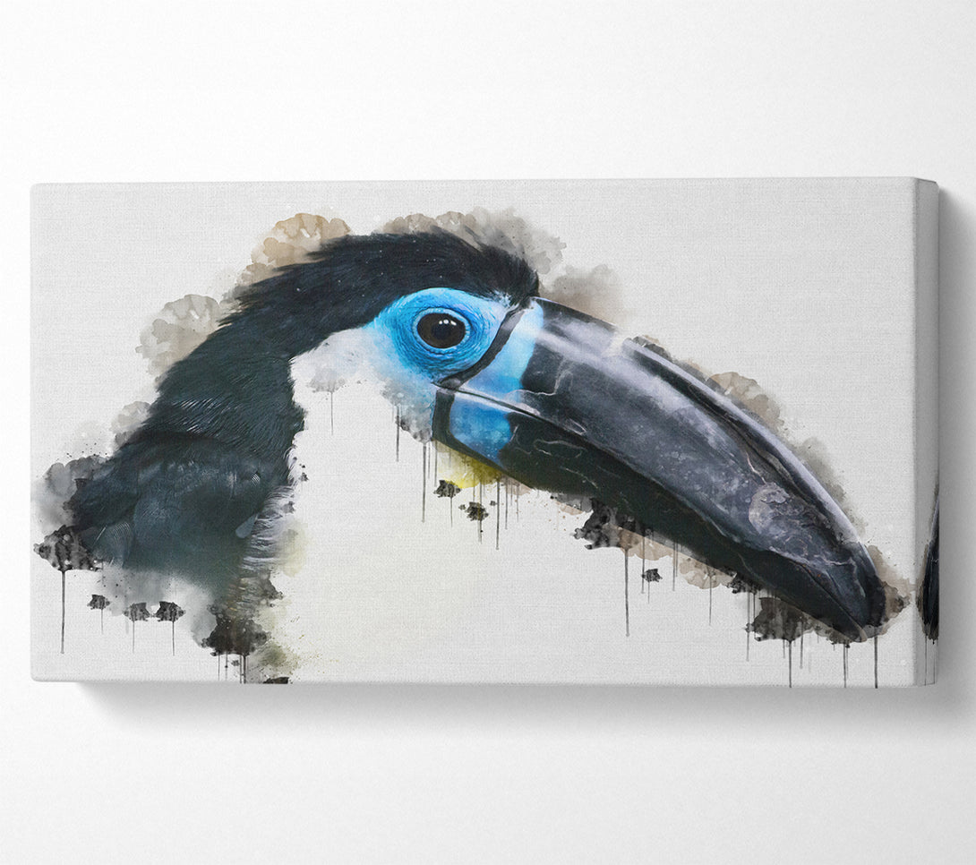 Toucan Watercolour wide canvas, printed on coated polyester canvas. Mounted on to a 44mm box frame, ready to hang.