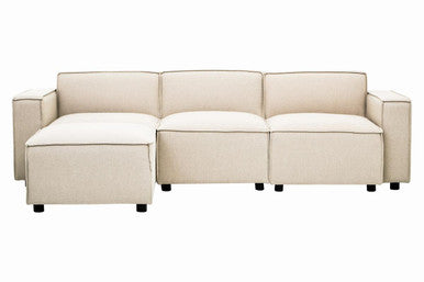 Complete your seating with the Toulouse Cream Fabric Sofa Ottoman, a versatile piece that functions as a footrest, coffee-table alternative, or extra seat.