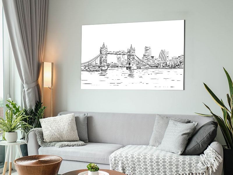 Tower Bridge Outline 1 Printed on brushed aluminium dibond. A modern way to display art and easy to maintain.