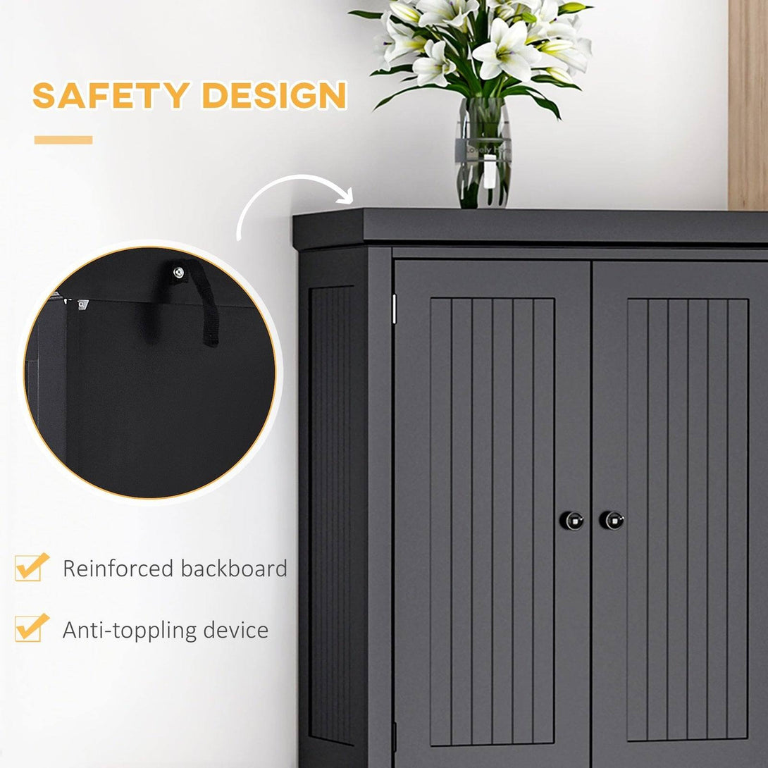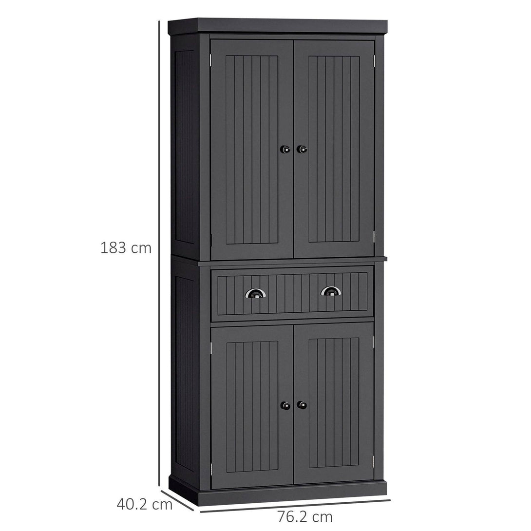 This HOMCOM tall storage cabinet is an ideal solution for any kitchen. Made from MDF with reinforced backboards, it is ideal for storing all your kitchen items from accessories, utensils, dry good and even your cookbooks. The kitchen larder cupboard has 4 doors with 3 adjustable shelves for you to position as required. The door handles and knobs are having a brushed nickel finish, giving the unit elegance and style. This is a great unit to have to match any room décor.