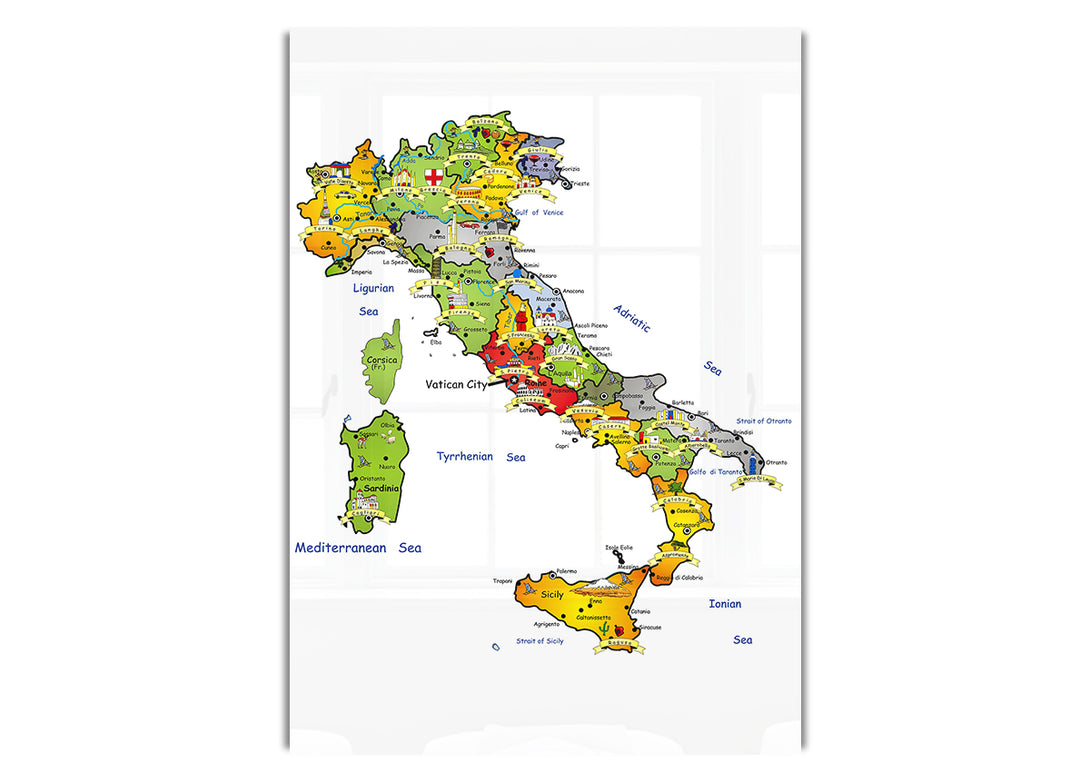Travel Map Of Italy acrylic print, UV printed onto 5mm thick acrylic glass. Comes with everything you need to hang on your wall.