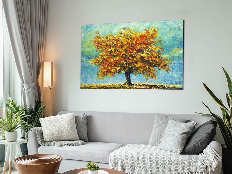 Tree Burns Orange Printed on brushed aluminium dibond. A modern way to display art and easy to maintain.