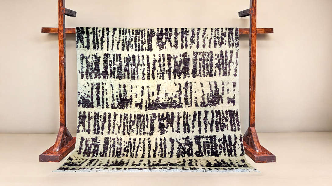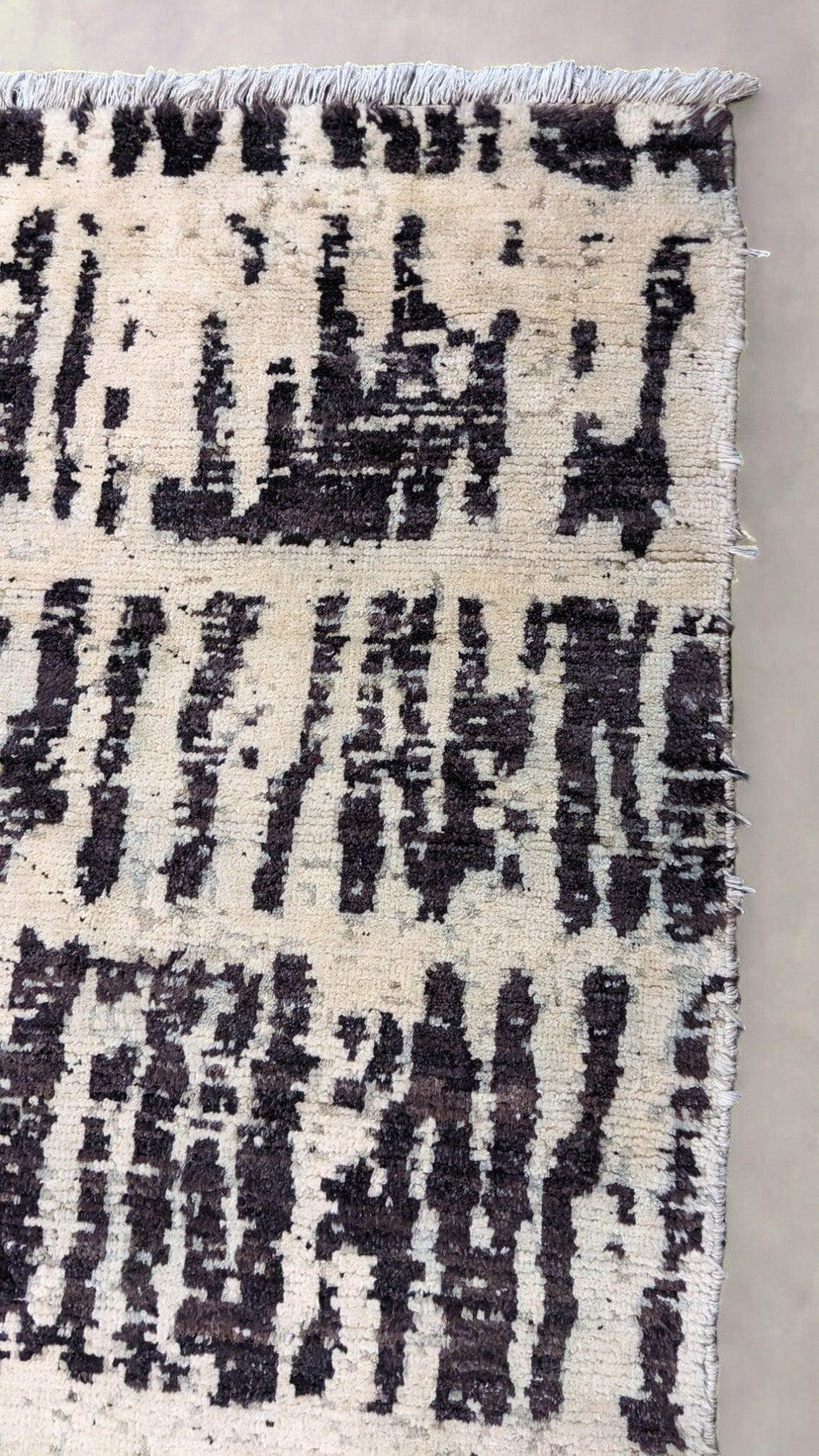 Featuring a captivating blend of rich brown and creamy hues, this rug showcases artistic Nordic style patterns and exceptional craftsmanship. Crafted from durable, soft wool, this versatile masterpiece effortlessly complements various décor styles.