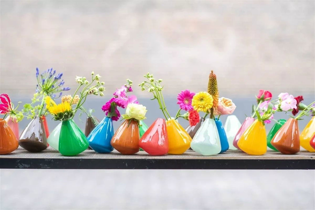 TUMBLING VASE: These vases do tumble because of their round bottom. They are fun, playful and colourful to display. Give them a little push and they wiggle around. The tumbling vases can be filled with just a few flowers or one single stem. Decorate your summer outdoor table or your evening table scape with these vases. They are perfect as gifts for your loved ones. And combine colours to create an even more colourful and playful display.