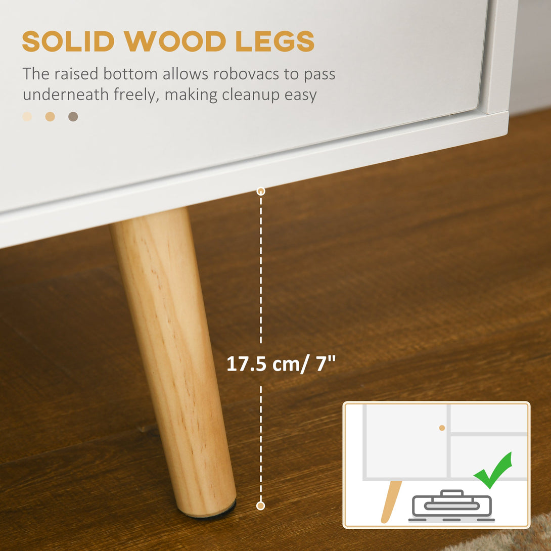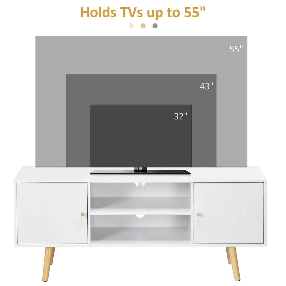 Upgrade your living room with this HOMCOM media console. This TV stand does more than holding your TV, it has two open shelves and two cupboards to provide large storage space for your favourite movies, a collection of video games or books you love to read. Additionally, there are two cable holes for organising wires without the mess. Without a doubt, this media unit will be a perfect companion for your relaxing moments.