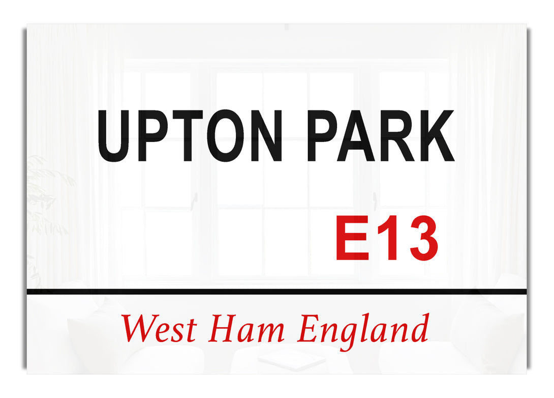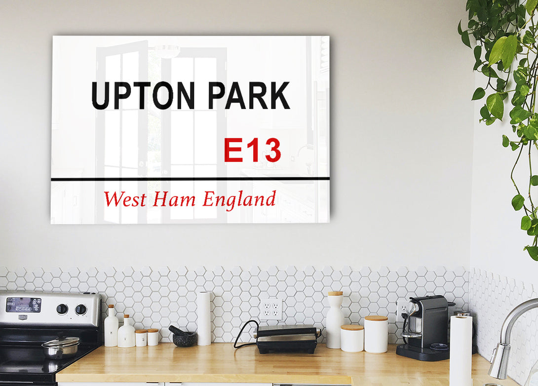 Upton Park Signs acrylic print, UV printed onto 5mm thick acrylic glass. Comes with everything you need to hang on your wall.