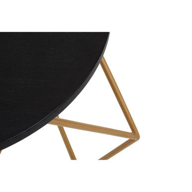 Topped with smooth black marble, this coffee table introduces style and an elemental appeal to the interior. The matte gold finish iron base of this table creates a visual statement in the living area and complements the round top seamlessly.