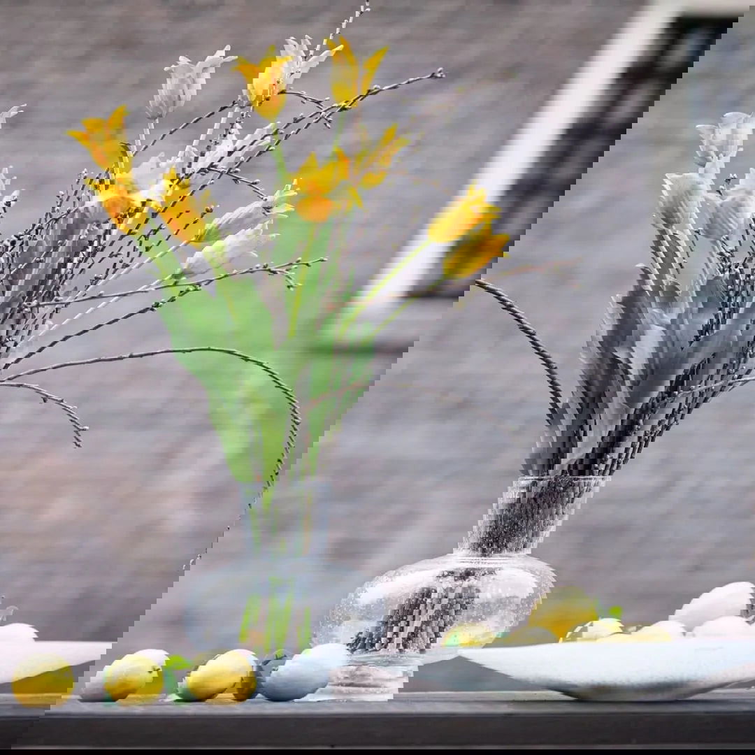 MOUTH BLOWN GLASS: DutZ vases are unique! Each glass vessel or glass object is made by hand from mouth blown glass. Every item is carefully crafted in the most traditional way by our master glassblowers from our European glass studios. This ancient craft has hardly changed throughout the ages.