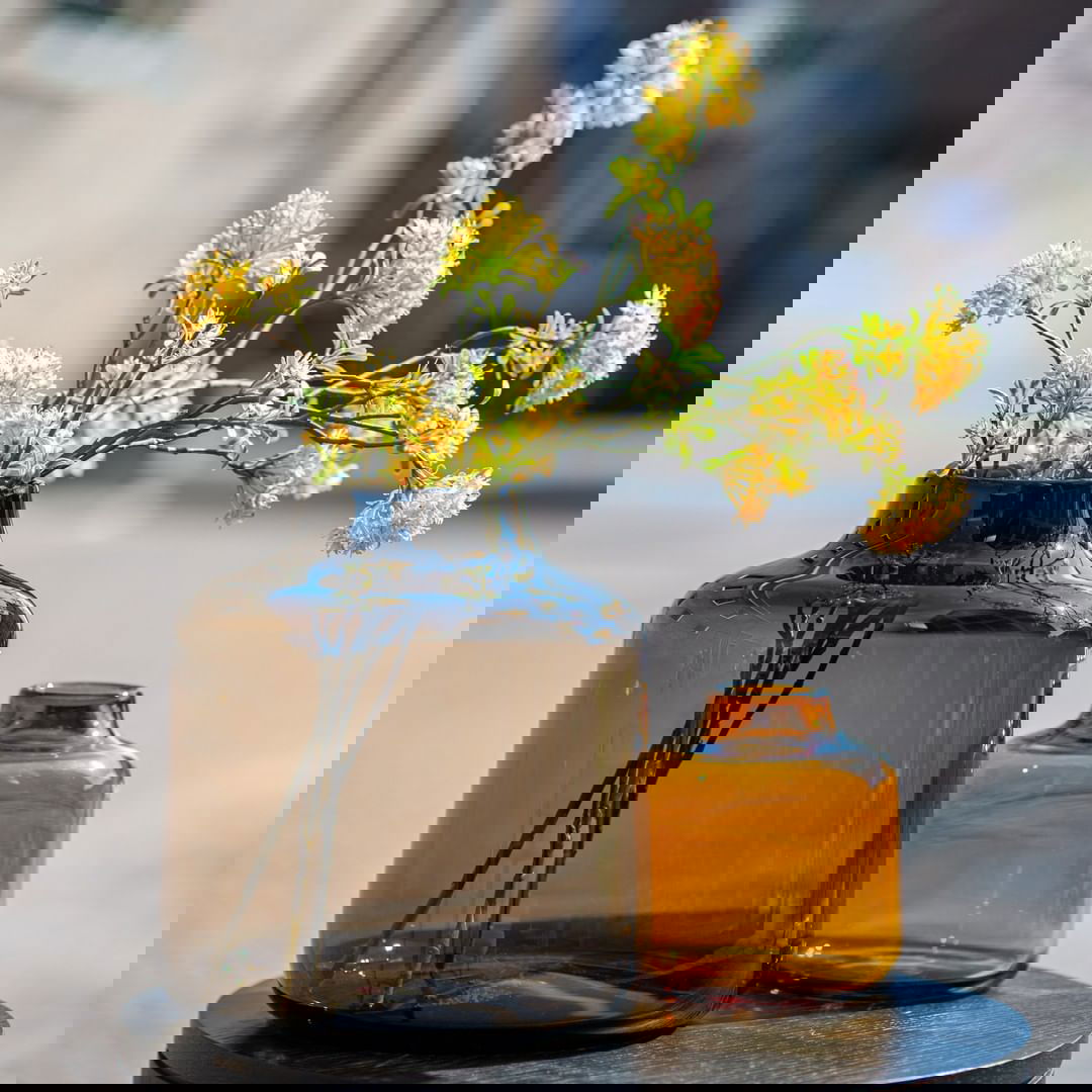 TISZA VASE: The mouth blown hurricane Tisza vase is a fun and playful design and is very suitable for many different bouquets. The narrow top and wider base allows for the flowers to really sit comfortably in the vase. This means the vase is a popular choice with florists and interior designers. Also, the colours are well-matched with Scandi design interiors and the vase it is beautifully finished with a contemporary and functional design.