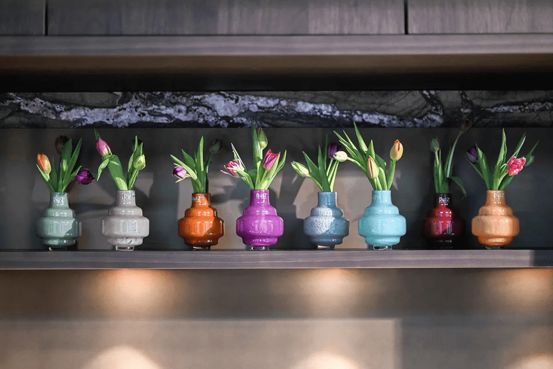 UNIQUELY CRAFTED: Each DutZ Collection vase, bowl, pot, or art object is therefore slightly different in colouring, shape and dimensions. Small deviations such as air bubbles, scratches, colour saturation are not defects, but a result of the process of traditional glass blowing. They enrich the product and give it a unique appearance. All DutZ vessels and objects are made from rich, heavy, luxurious glass; Usually it is 3 mm thick. The colouring is mixed inside the glass and not painted on. No DutZ vessel is ever exactly alike. And we like it that way!