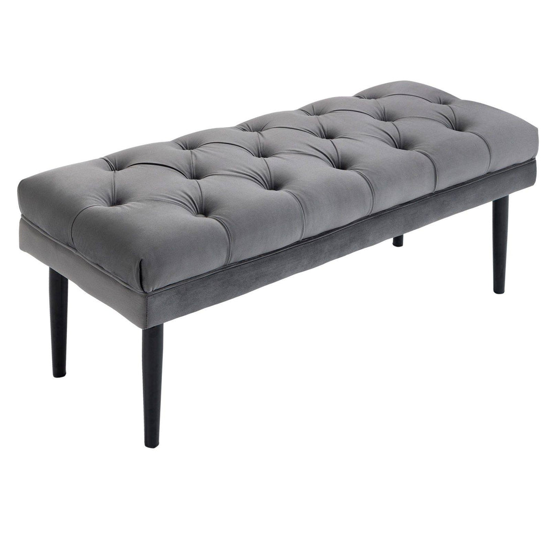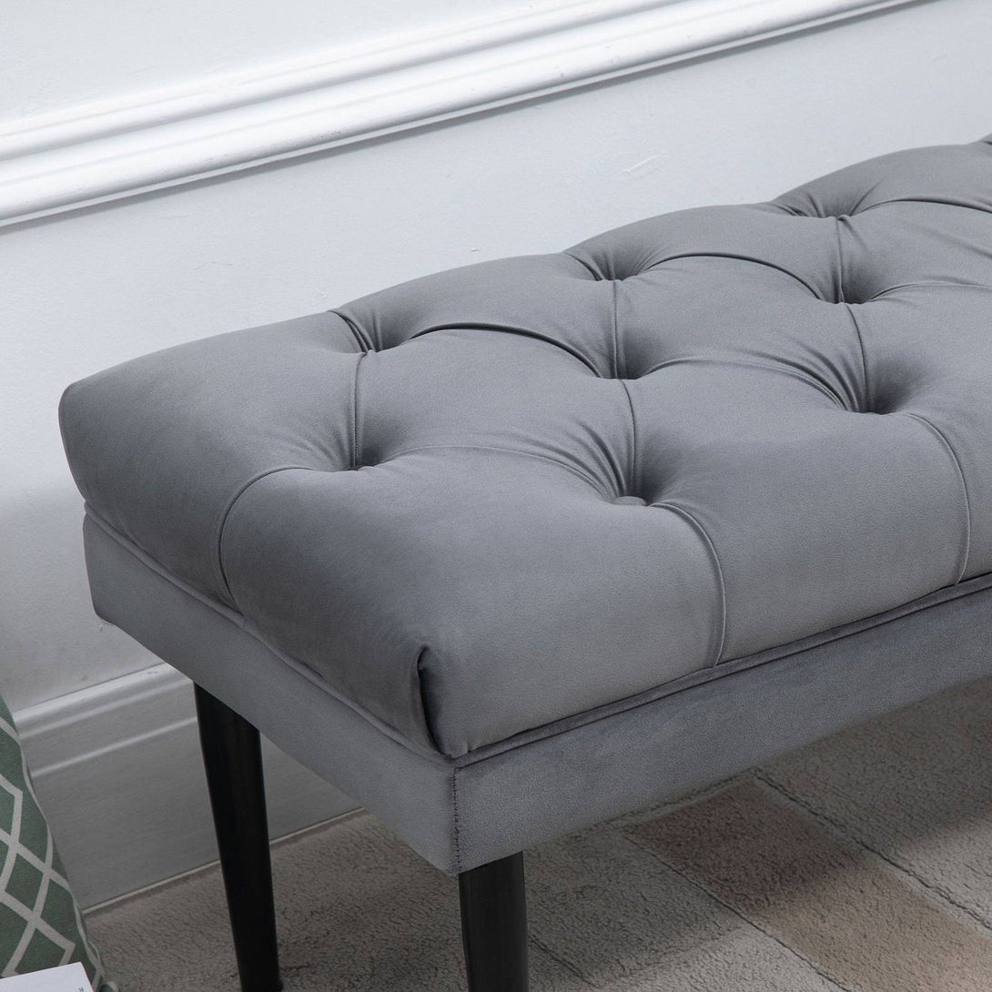 Additional seating made easy and elegant. Pick this HOMCOM bench up, and put it down wherever you want. The top is filled with sponge, it's thick and comfortable to sit on. The frame, made from rubber wood for strength, is fitted with metal legs for strong support. Finished with button tufting for a pretty look.