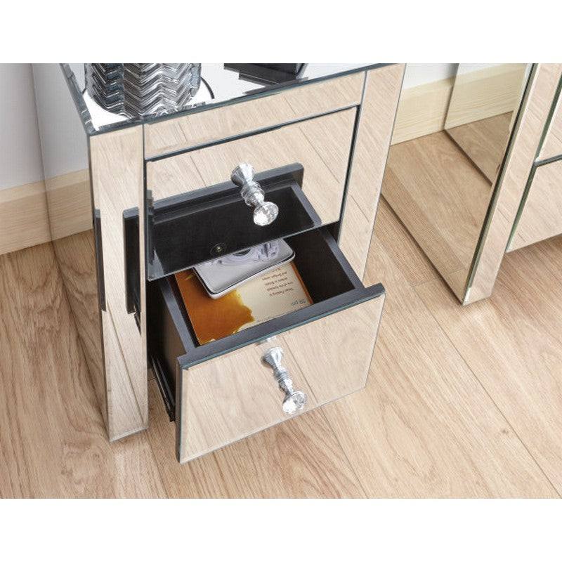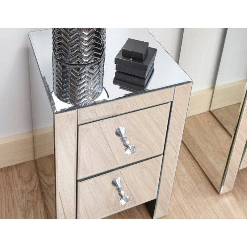 Venetian Slim Bedside Table Mirrored 2 Drawers