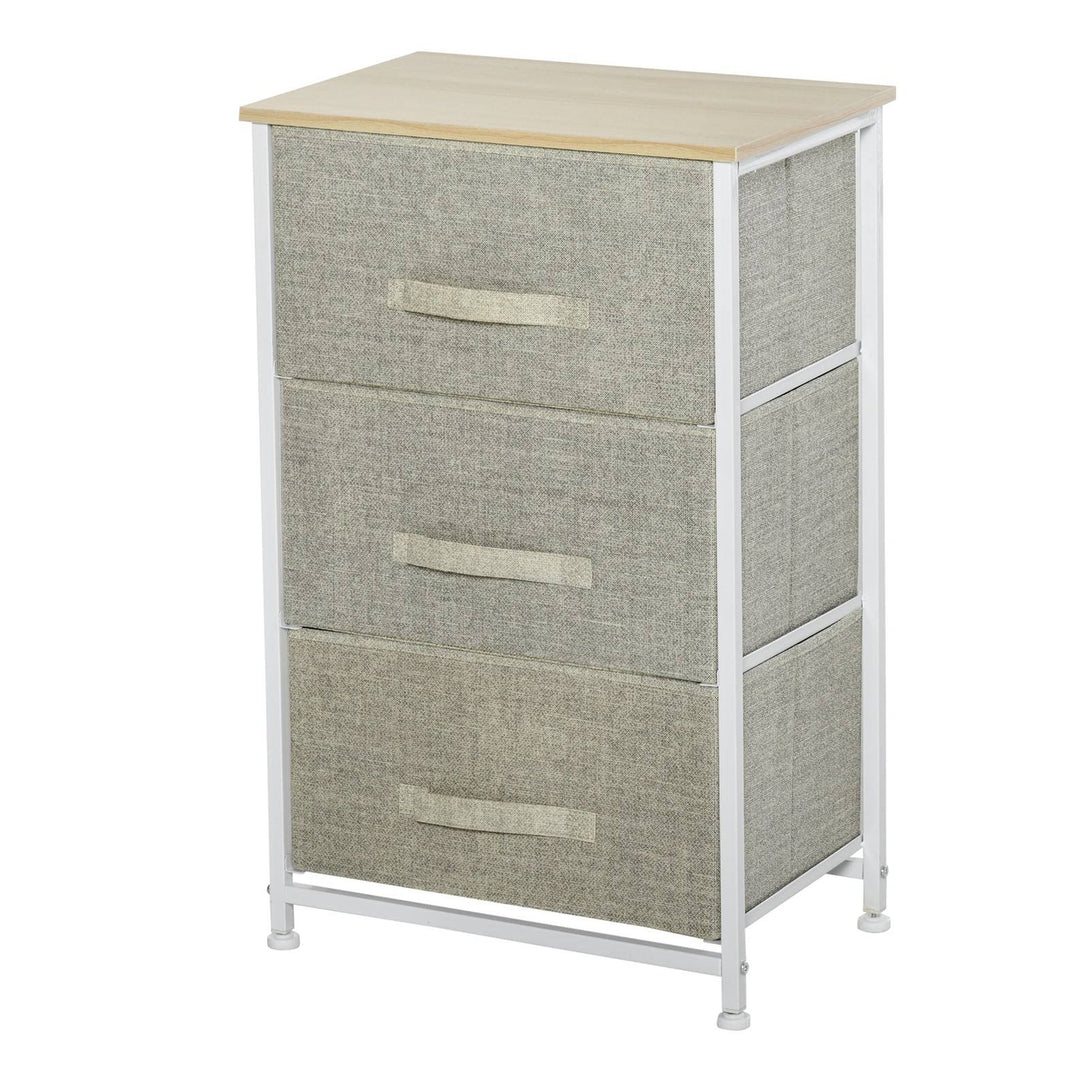 The simplicity of this three-drawer unit from HOMCOM means it will welcome itself into your home with ease. The light grey and white colourway, in a classic sharp shape, works great all over the home - from the bedroom, to the hallway, living room and beyond. With a powder-coated steel frame for strength, it is fitted with three thick linen drawers for storage. It's finished with handles on the drawers to open them easily.