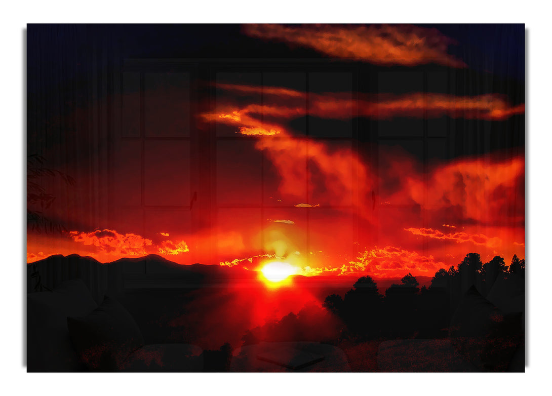 Vibrant Red Sun Clouds acrylic print, UV printed onto 5mm thick acrylic glass. Comes with everything you need to hang on your wall.