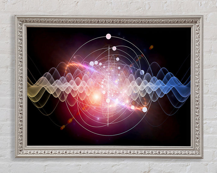 Introducing the Vibration Of The Universe Framed Print, a stunning piece of framed art that captures the beauty and mystery of the cosmos. This exquisite print is available in six sizes, ranging from small to oversized, ensuring the perfect fit for any space. Handcrafted in the United Kingdom, each piece is made with attention to detail and high-quality materials.