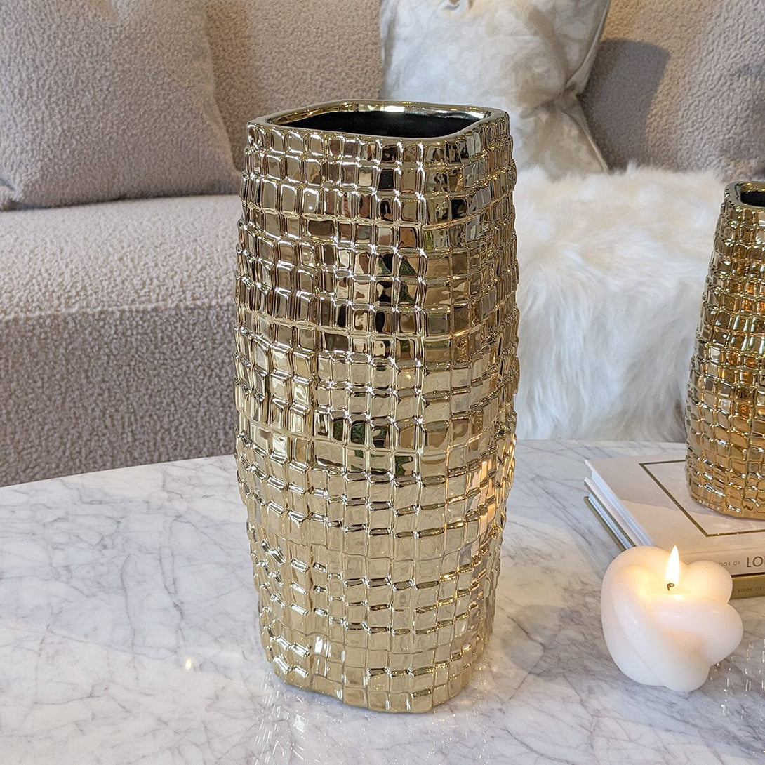 Add some glam to your home with the Vieste Large Gold Abstract Vase, a stunning piece to elevate your home décor.