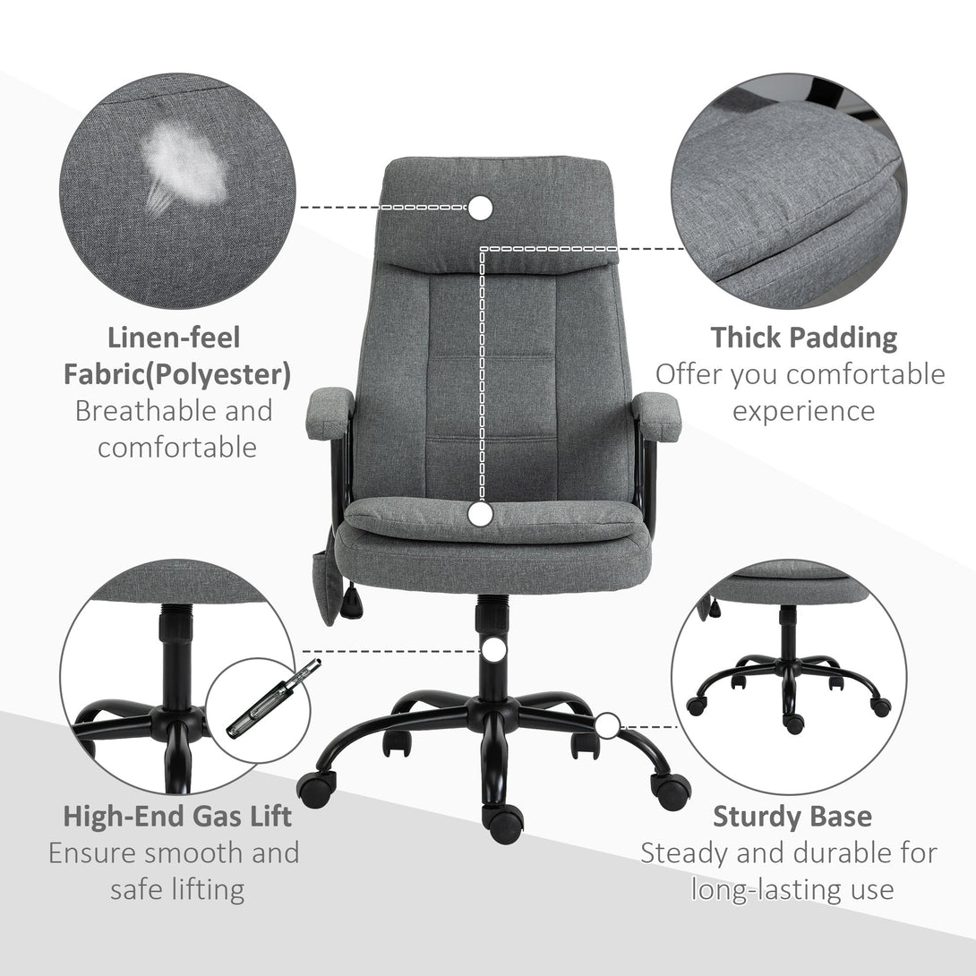 Vinsetto 2-Point Massage Office Chair Linen-Look Ergonomic Adjustable Height w/ 360° Swivel 5 Castor Wheels Rocking Comfortable Executive Seat Grey
