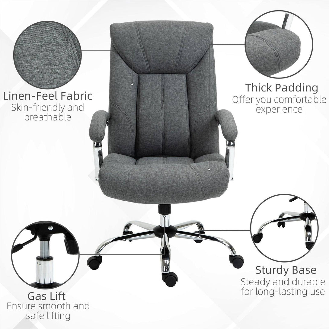 Vinsetto Home Office Chair Linen Fabric Computer Chair With Adjustable Height Armrests Swivel Wheels Grey