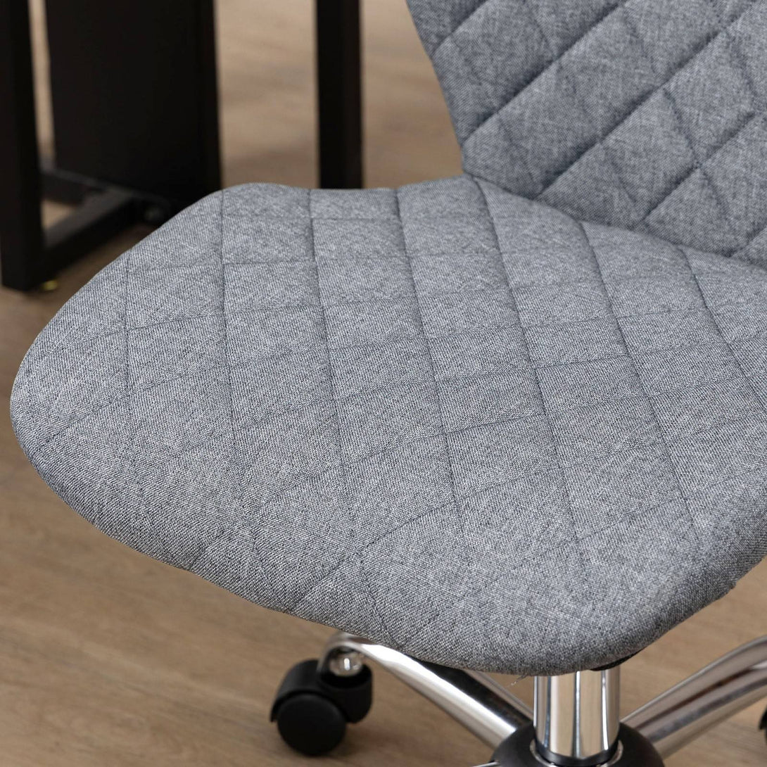 Get complete freedom of movement with this office chair from Vinsetto. It's an armless design with a full swivel seat, which means you can quickly move from side to side without straining your body. The padding on the computer chair's seat and back keep you comfortable. The metal frame is robust and fully supportive, finished with beautiful linen upholstery in a quilted-stitch design. The comfy chair is a good choice for your home office.