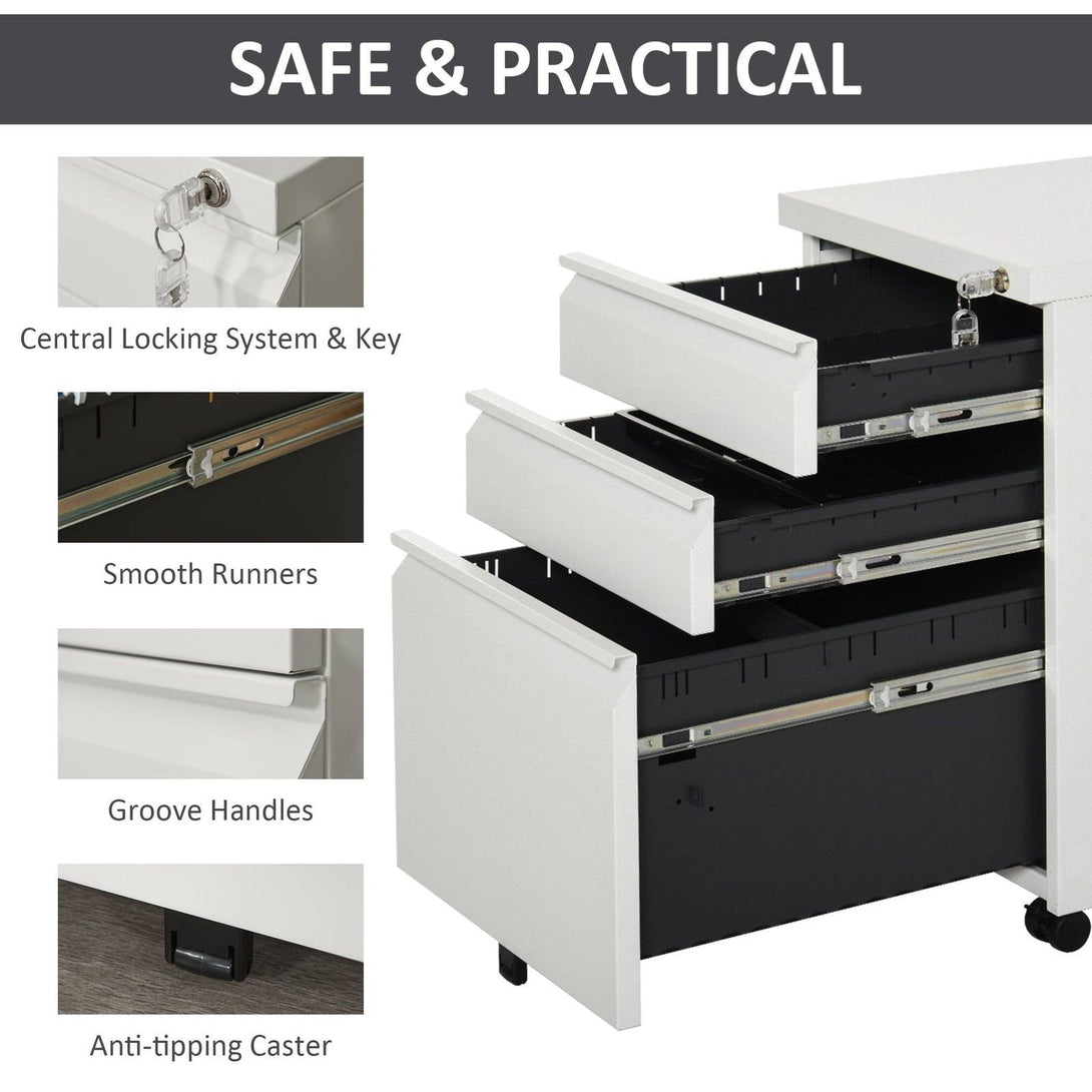 Vinsetto Mobile Vertical File Cabinet Lockable Metal Filling Cabinet with 3 Drawers and Anti-tilt Design