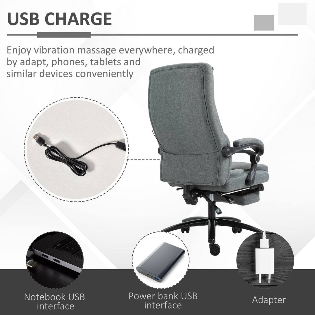 Vinsetto Office Chair 2-Point Removable Vibration Massage Pillow Executive Ergonomic Usb Power Adjustable Height 360 Swivel Grey